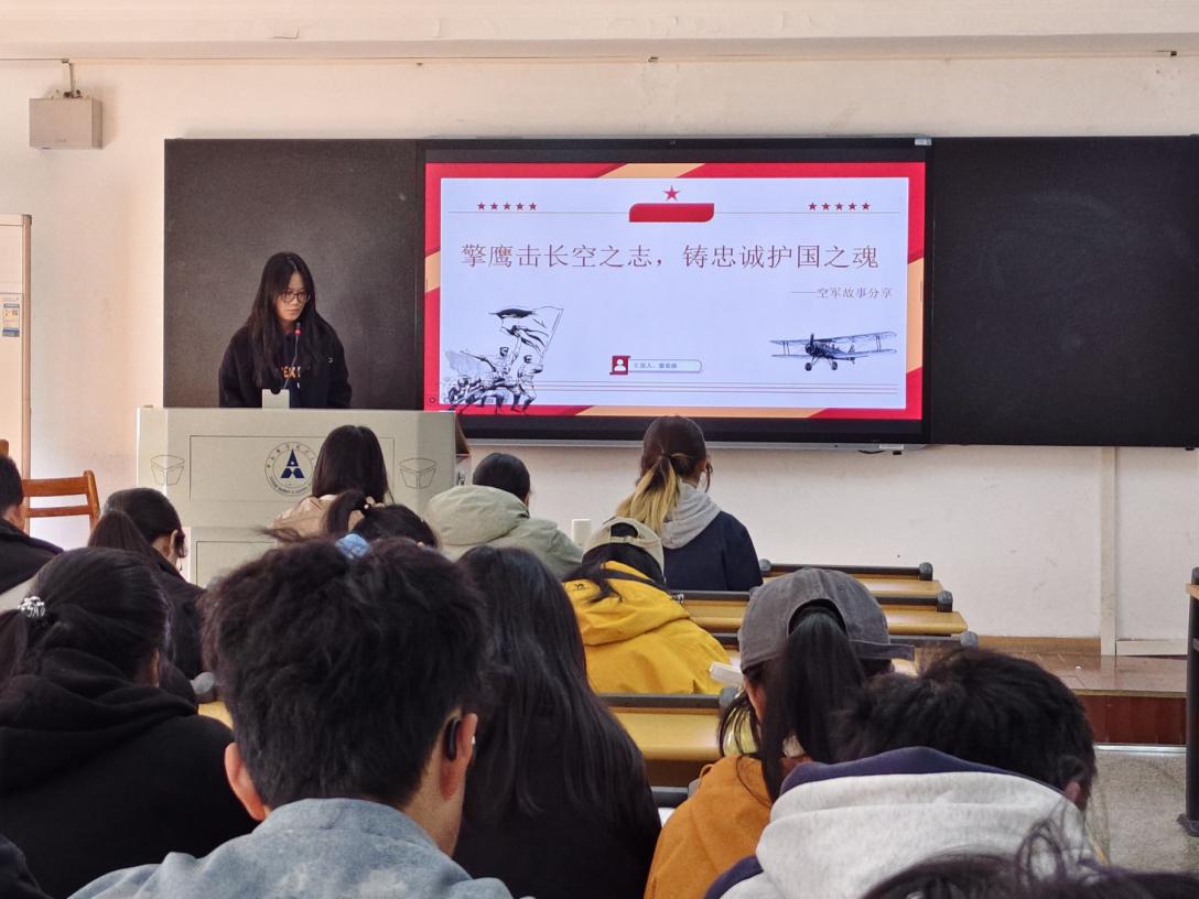 活动进入下一个环节,黎棠晓同学以“擎鹰击长空之志,铸忠诚护国之魂”为主题,进行了空军故事分享。