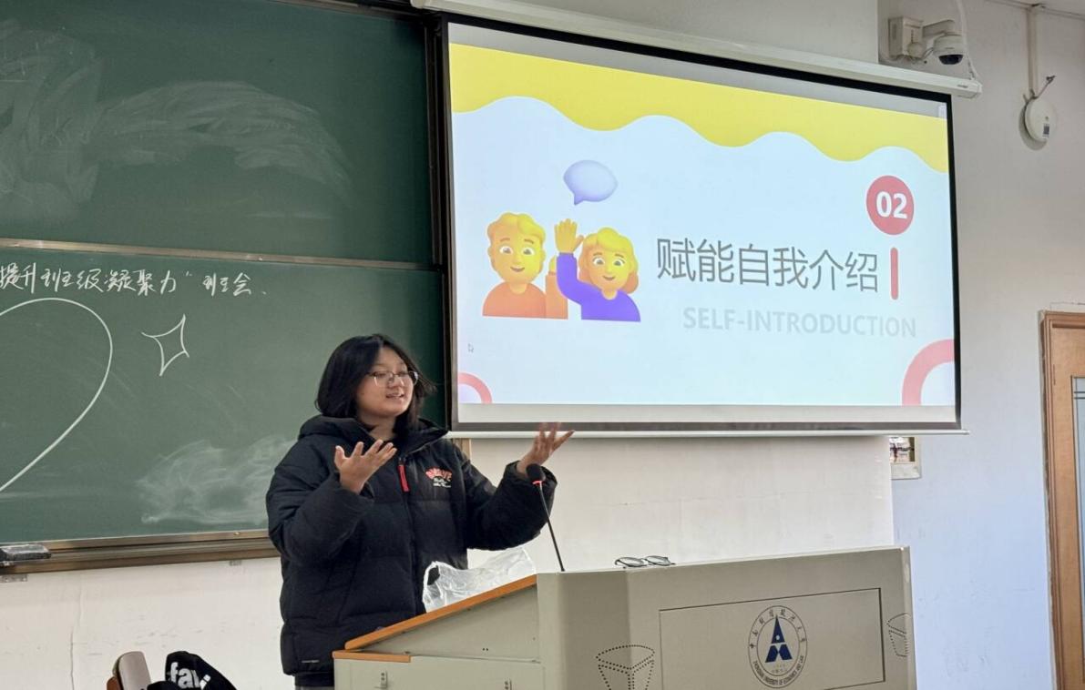 随后,心理委员带领大家进行分组,开始赋能自我介绍环节。郑林曦同学首先在台上进行了示范,然后每位同学在各自的小组内,用富有创意的方式介绍自己。这个环节不仅增进了彼此的了解,也展现出每个人独特的优点和风采。