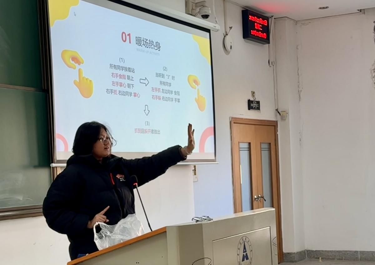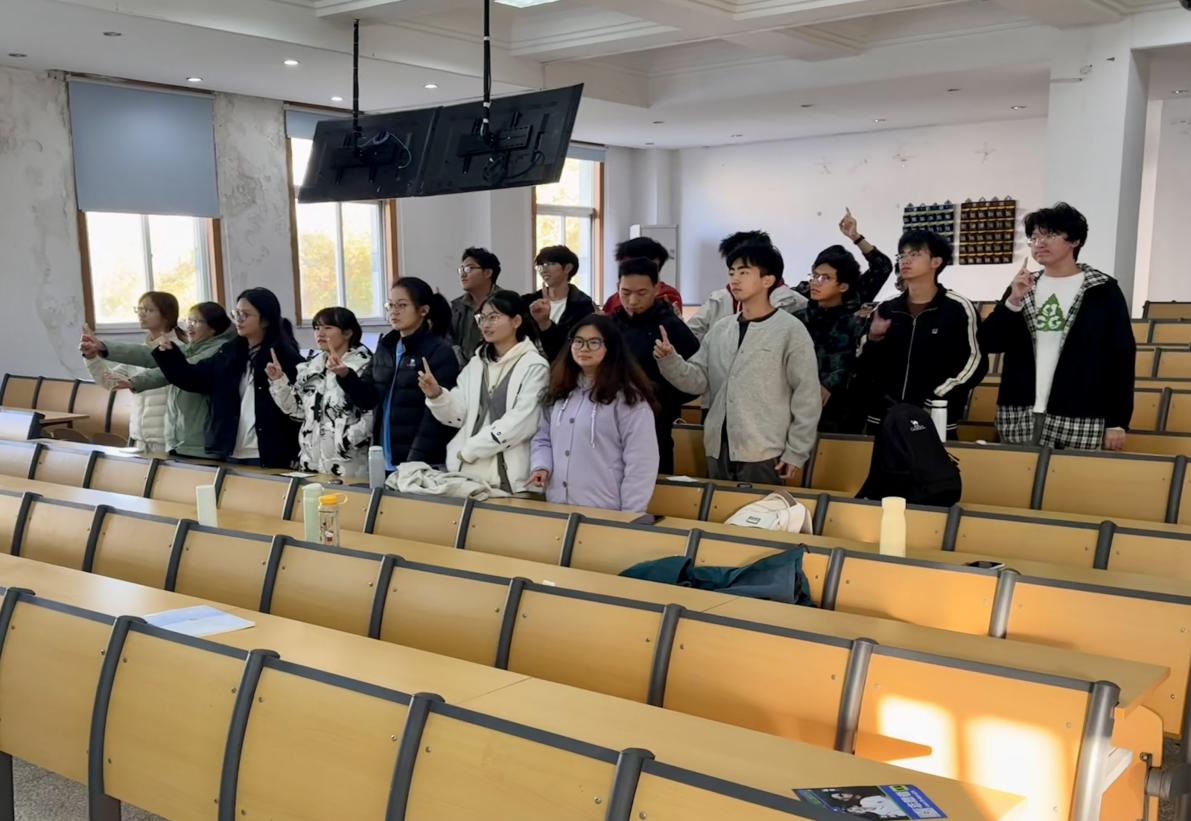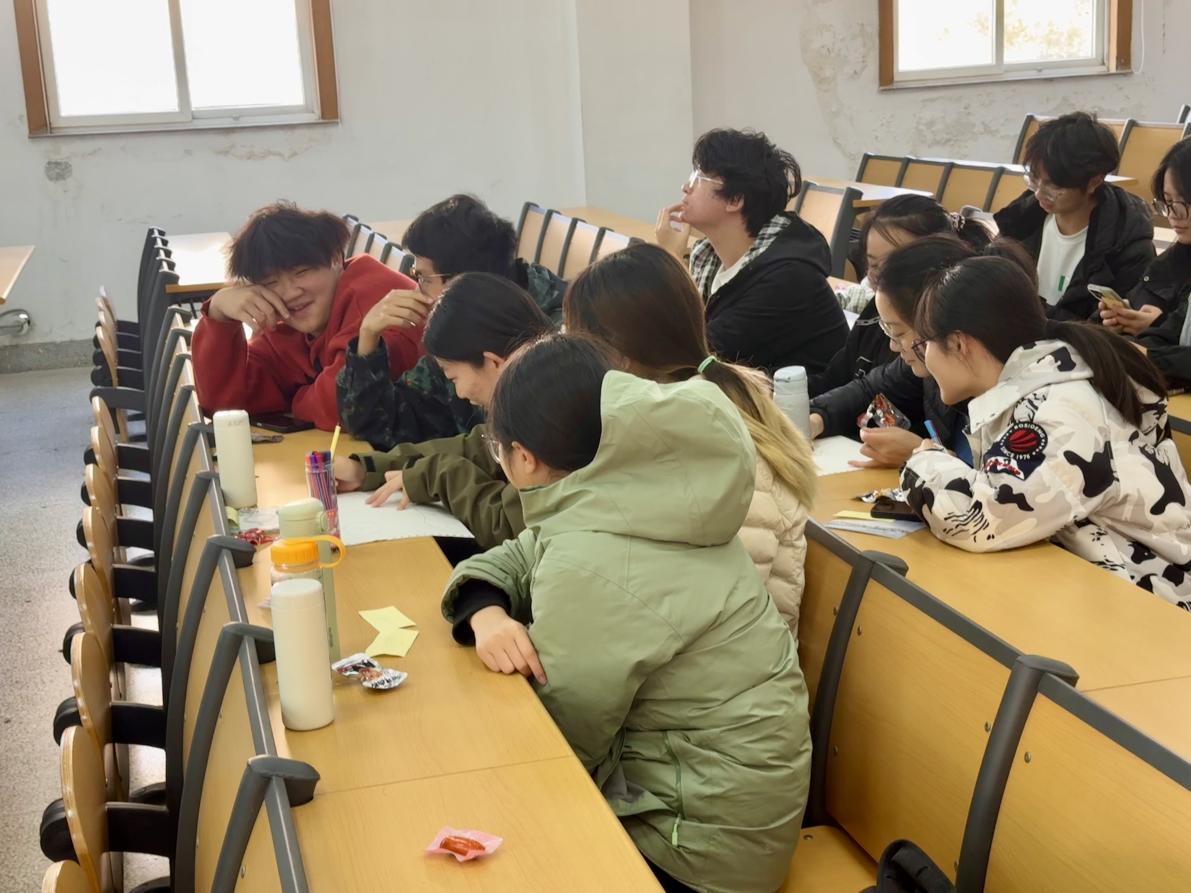 活动伊始,在心理委员的指示下,同学们围成一圈,进行暖场热身——抓手指游戏。同学们在轻松愉快的游戏中迅速拉近距离,笑声不断,气氛瞬间活跃起来。