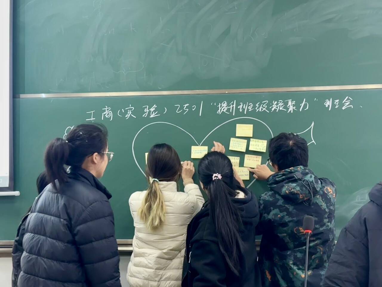 紧接着,在班歌的优美旋律中,全体同学产生了情感共鸣,而班会也走向最后一个环节——同过一个生日。心理委员为每一个同学准备了便利贴,大家纷纷写下对班级祝福的话语,并贴到黑板上。每一个同学都深切地感受到,这个班级不仅是一个学习的集体,更是一个温暖的大家庭。