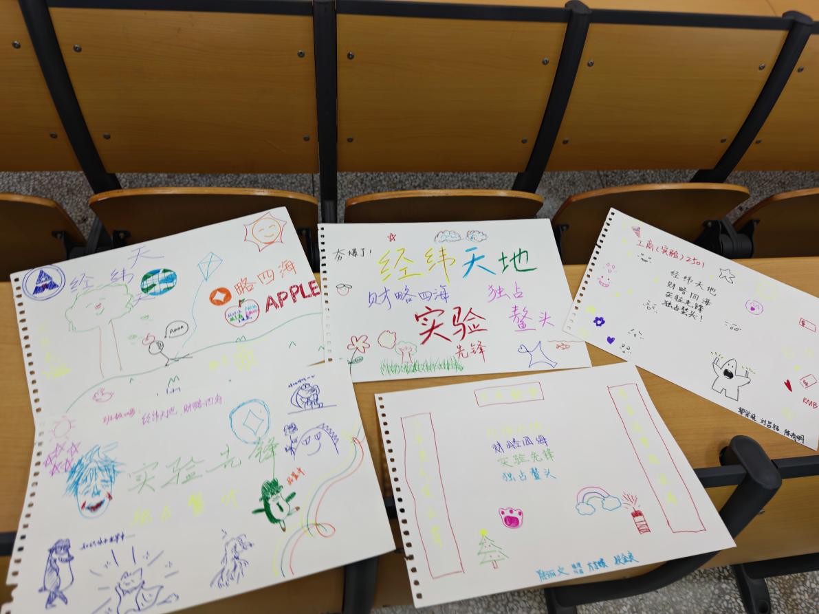 接下来,班会来到了同绘海报环节。心理委员向各组发放水彩笔和白纸,然后由各小组齐力合作,在海报上写下班级口号,并用水彩笔共同绘制象征班级精神的海报。同学们笔下创作出的一幅幅色彩斑斓、寓意深刻的作品,凝聚了大家的智慧与情感。