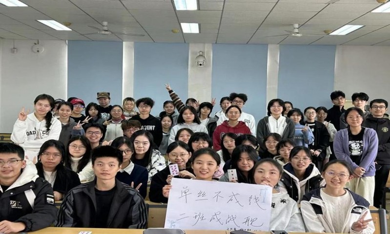 在会议的尾声,同学们在心理委员的带领下,将对二班的寄语写在便签上,贴在一起,共同为工商2502过生日,同学们表示,希望工商2502在接下来的日子里越来越好。