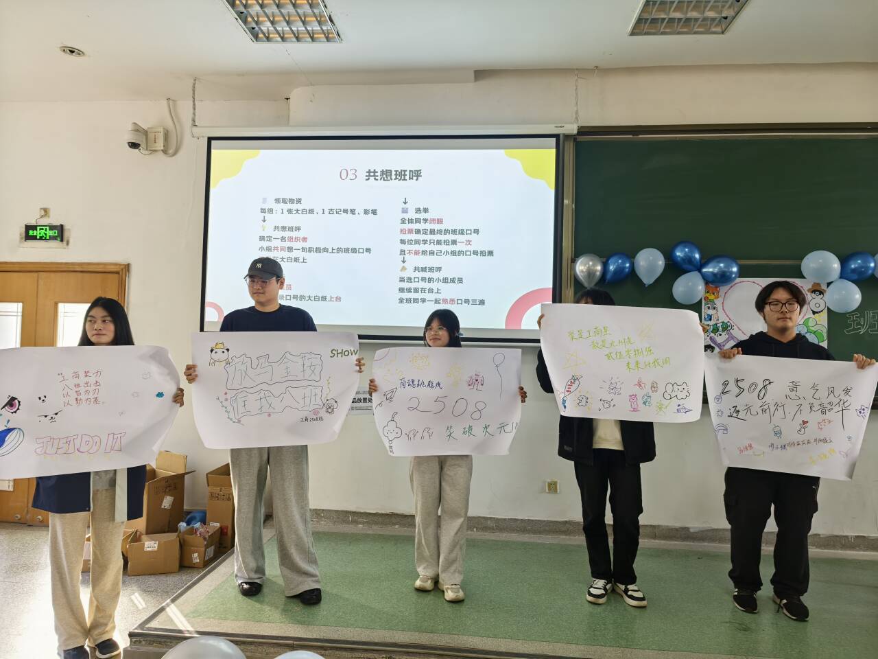 活动第二项,现场同学在各班委的有序组织下,通过抽取纸牌的方式进行“赋能自我介绍”小游戏。此刻,大家彼此的距离已被悄然拉近,然而,一个卓越的班集体,不仅需要欢笑,更需要深刻的共鸣与价值的共振。此时,同学们所分享的自己的每一个优点,都会是构筑集体未来的宝贵拼图。每位同学的独特光谱,都会照亮整个班集体。