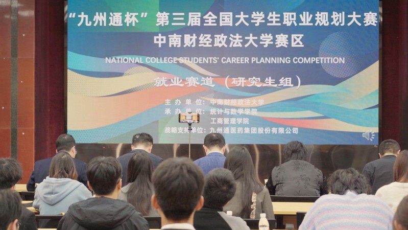 (通讯员:赵红红)为精准赋能学生职业发展,全面提升生涯规划能力与综合竞争力,助力我校学子在人生蓝图的关键擘画期打下坚实基础,2025年11月28日下午,由中南财经政法大学就业指导服务中心主办、中南财经政法大学工商管理学院承办、九州通医药集团股份有限公司赞助的第三届全国大学生职业规划大赛校赛(决赛)就业赛道(研究生组)在文谭楼四楼报告厅顺利举办。本次大赛旨在以赛促学、以赛促教,引导广大学子科学规划职业生涯,为实现高质量就业精准导航。经学院院赛推荐、校赛(复赛)选拔等环节,本次校赛(决赛)就业赛道(研究生组)共有来自9个学院的12位同学入围。