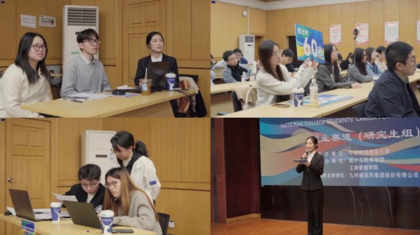 经过激烈角逐,知识产权学院研究生吴炜彬、工商管理学院研究生谭逸萌、金融学院研究生仓士权、纪检监察学院研究生李玉娇、统计与数学学院研究生傅耀茗获校赛(决赛)就业赛道(研究生组)一等奖。
