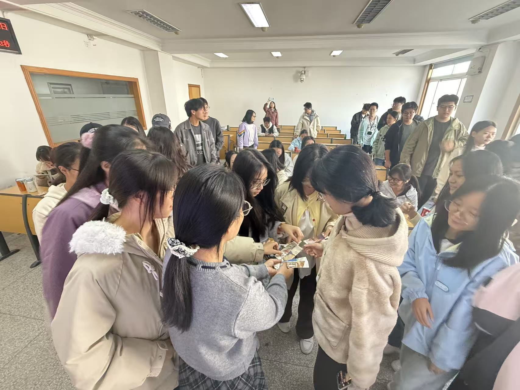活动未始,情意已至。班会前夕,班委们便将手写的邀请函,如一枚枚载着诚意的羽毛,送至每一位同学、辅导员与学姐的手中。他们更提前潜入活动现场,以缤纷的气球、创意十足的海报与板报,将寻常教室点缀成温暖的“心灵港湾”,静候每一位家人的到来。
