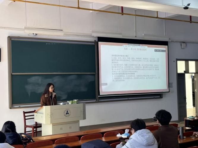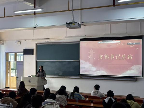 活动最后,支部书记作总结讲话。潘俊颐老师强调全体党员要以此次学习为契机,持续深化对党的创新理论的理解与把握,不断提高政治判断力、政治领悟力、政治执行力。要立足学生党员身份,将理论学习与专业学习、实践服务相结合,把党的二十届四中全会精神和习近平总书记重要讲话精神融入日常、落到实处,在科研学习、志愿服务、社会担当等方面发挥先锋模范作用,为学校改革发展和国家现代化建设贡献青春智慧与力量。