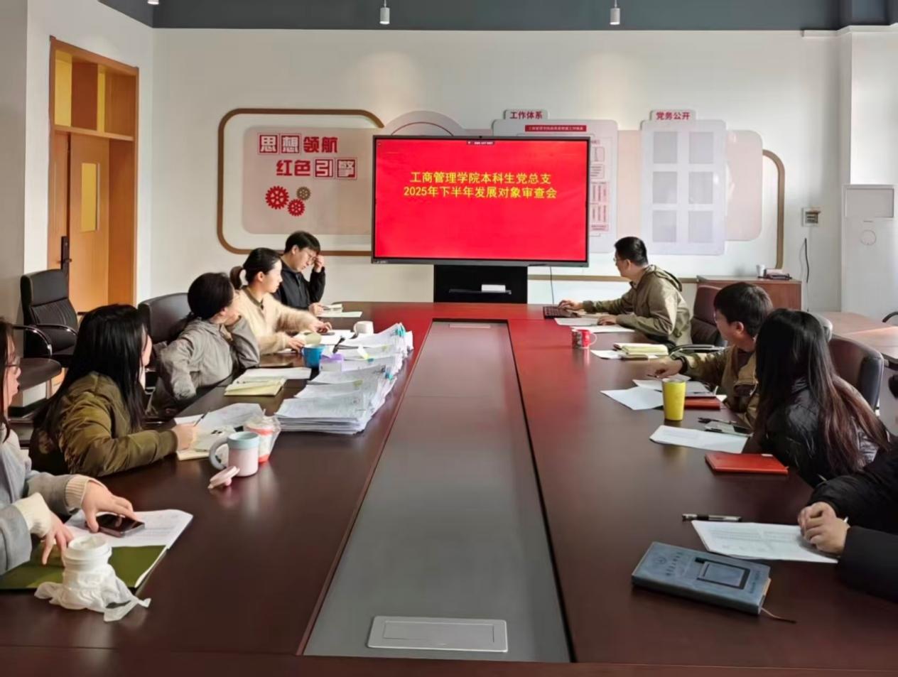 为深入学习贯彻党的二十届四中全会精神,进一步向党组织输送高质量人才,12月2日上午,工商管理学院本科生党总支在南湖校区文瀚楼北703会议室召开2025年下半年发展对象审查会,对本科生党总支确定的59名拟发展对象进行审核评议。工商管理学院党委副书记袁媛、工商管理学院党委组织员刘淑君,以及工商管理学院各党支部书记、全体辅导员出席会议。会议由工商管理学院本科生党总支宣传委员南天亮主持。