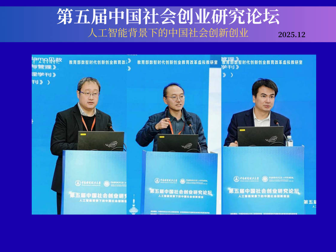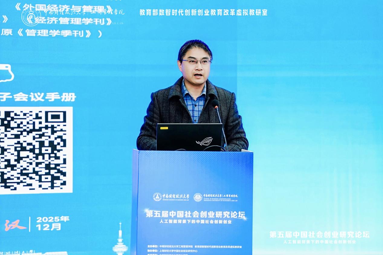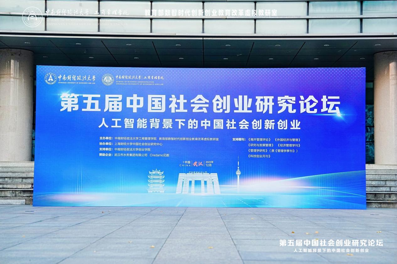 (通讯员:徐莹玮、周甜、刘文通)2025年12月6-7日,由中南财经政法大学工商管理学院、教育部数智时代创新创业教育改革虚拟教研室主办,上海财经大学中国社会创业研究中心协办,中南财经政法大学创业学院支持的第五届中国社会创业研究论坛在中南财经政法大学南湖校区成功举行。