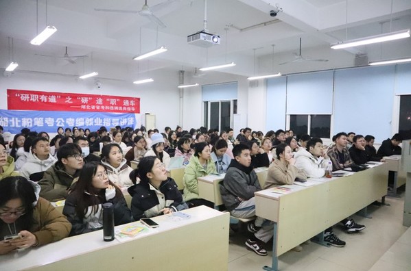 (通讯员:陈宁佳、谭逸萌)为助力我校学子精准把握公务员考试与选调生招录的最新态势,科学规划备考路径,实现高质量就业目标,中南财经政法大学工商管理学院研究生会与“菱”心聚力辅导员美育工作室于2025年12月12日联合粉笔教育,在文添楼310教室成功举办第295期“研职有道”系列活动之“研”途“职”通车——湖北省省考与选调生选岗指导专题讲座。本次讲座特邀粉笔教育杨文老师担任主讲,围绕公考形势分析、公职类考试考情解读、选调生公告深度剖析、选岗策略指导及备考规划制定五大核心板块展开系统讲解。