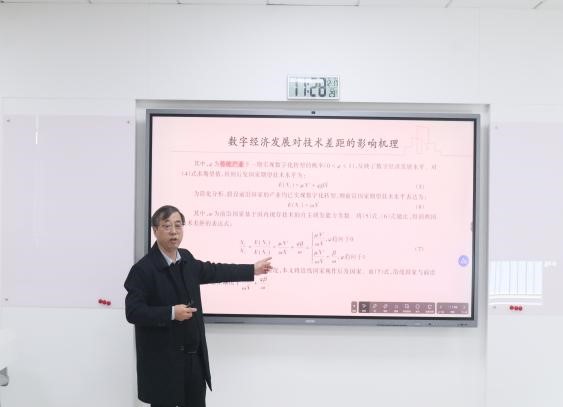 本次讲座以“从技术鸿沟到技术追赶:数字经济发展效应”与“论文发展工作坊”为主题。会议伊始,蔡翔教授从当下国内相关政治经济领域变化以及如何应对来引发思考,并进行讲座内容的引入。随后,他紧紧围绕研究问题、文献综述、边际贡献、理论分析与研究假设、技术追赶的演化特征-特征事实、计量模型与变量设定、实证结果与分析、进一步研究、主要研究结论、政策启示十个方面展开系统阐述。