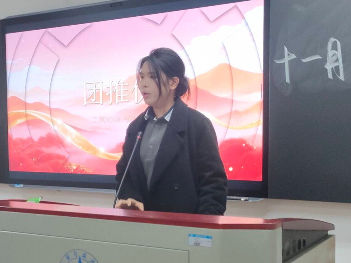 大会在团支书王致宏同学的主持下有序进行。在推优发言环节,各位候选人以饱满的热情展现了积极向党组织靠拢的决心。刘佳敏同学深情朗读了自己亲笔撰写的入党动机,真挚的文字配上动人的音乐,她的真挚情感打动了在场所有人。