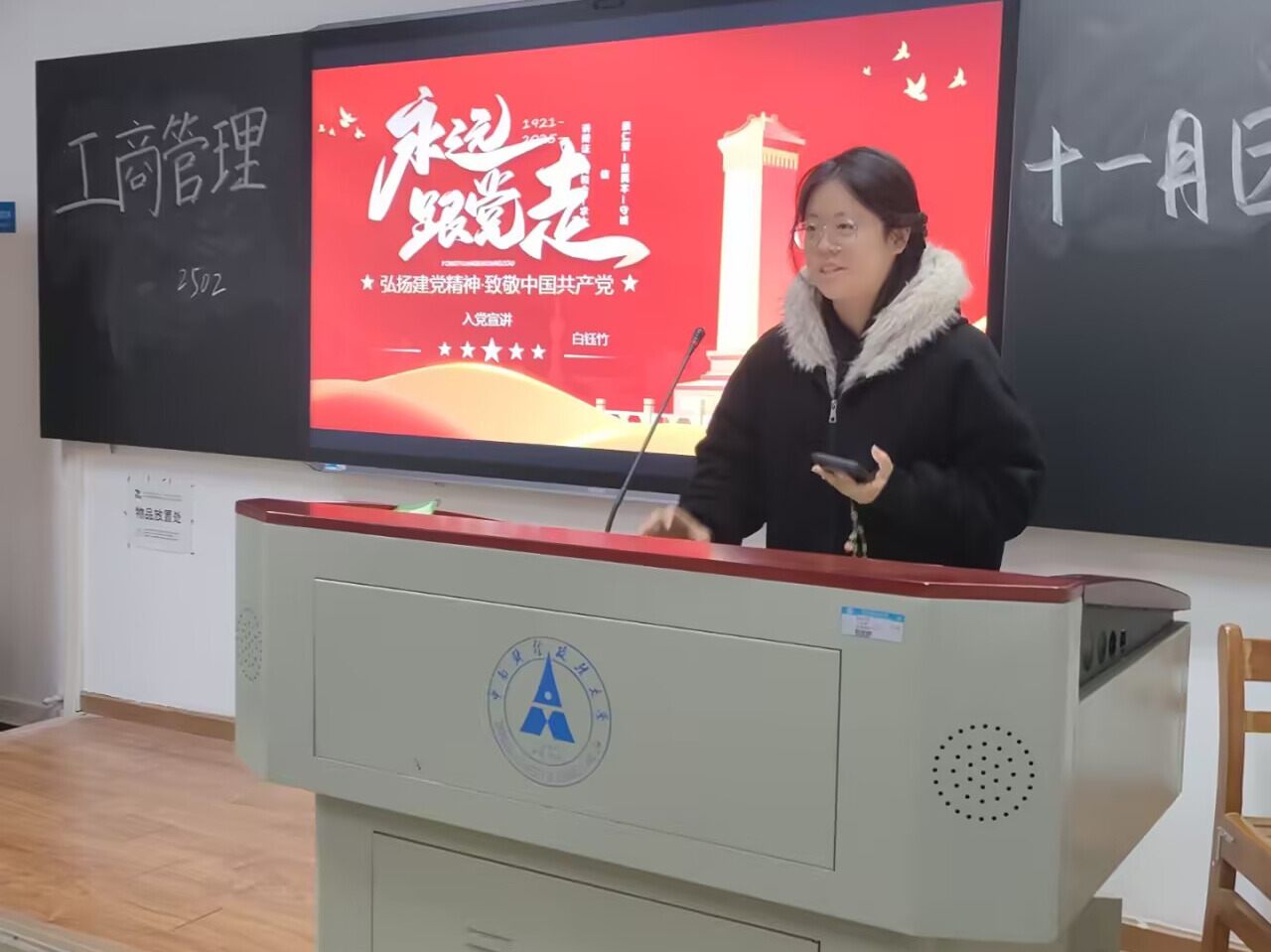 (通讯人 王致宏 摄影 刘思辰)近日,工商管理学院工商2502班于我校文润楼102教室隆重举行了团组织推优入党大会,现场气氛庄重而热烈。本次大会旨在为党组织选拔、输送优秀人才,充分展现共青团作为党的助手和后备军的重要作用。