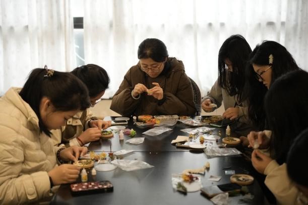 此次“共赴花 young 年华”干花杯垫DIY活动,既是学院致敬女性、传递温情的节日献礼,也是“以美启商”育人理念的生动实践。同学们在手工创作中不仅锻炼了动手能力与审美创造力,更在沉浸式体验中放松身心、感受美好,让美育之美浸润心田。