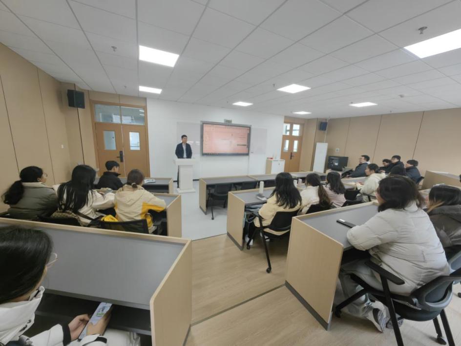 郭小义老师作总结讲话。他对师兄的倾囊相授表示感谢指出本次班会是朋辈引领、助力成长的重要实践。郭老师在总结讲话中对全体同学提出三点希望:一是要锚定方向,把职业规划的事做在当下;二是要关照自我,守护好自己的心理健康;三是要守住底线,时刻绷紧安全这根弦,严格遵守校园各项规章制度。
