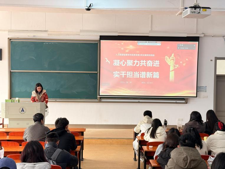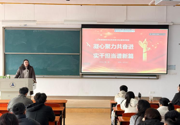 为深入学习贯彻习近平新时代中国特色社会主义思想,全面落实党的二十届四中全会精神与2026年全国两会部署,教育引导支部党员坚定理想信念、树立正确政绩观、强化实干担当,3月19日下午,人力资源管理本科生党支部于南附楼开展以“凝心聚力共奋进 实干担当谱新篇”为主题的党日活动。本次活动由陈一睿主持,党支部书记范梦宇老师出席本次活动。