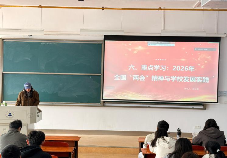阳汶珊领学2026年全国两会精神,解读了“十四五”时期的发展成就、“十五五” 主要目标与四大战略重点,重点学习了今年国家在教育、科技、人才领域的部署要求。结合学校发展实践,支部党员围绕学科建设、人才培养、科研创新、师资队伍建设等方面展开交流,明确要以两会精神为指引,对接国家产业发展与科技进步需求,将财经政法深度融通的培养要求落到实处,努力成长为适应国家发展需要的高素质人才。活动还布置了《习近平:让愿担当、敢担当、善担当蔚然成风》等自学篇目,引导党员同志们自主深化学习感悟。