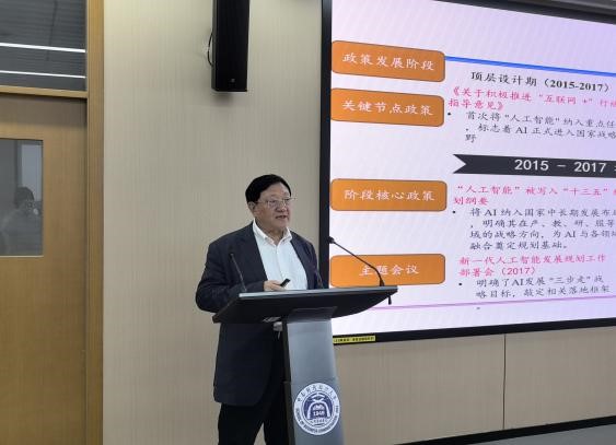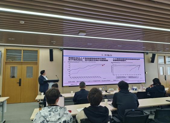 赵曙明教授结合当前全球人工智能发展的整体态势,系统分析了各国在人工智能领域的差异格局,并深入阐释了人工智能发展的战略意义。随后,赵教授进一步梳理了我国在不同发展阶段对人工智能领域的政策支持情况,指出国家层面对工商管理学科的持续重视与引导。最后,赵曙明教授推荐《21世纪管理挑战》一书,鼓励同学们通过阅读深化对现代管理问题的理解与思考。