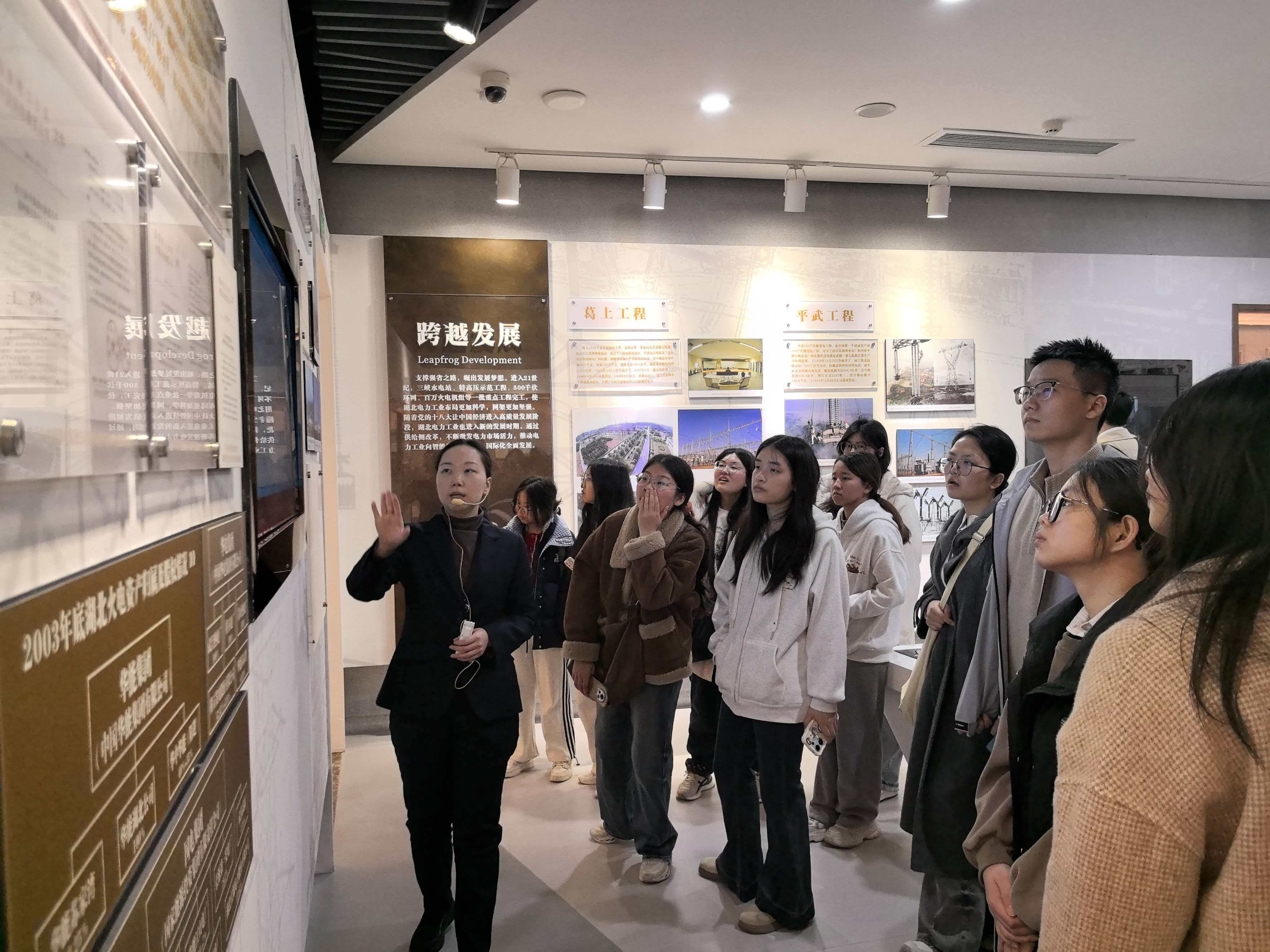 活动下午14:00,师生一行抵达湖北省博物馆。从早期发电设备到现代特高压、智能电网的大国重器,一部浓缩的能源工业发展史随着师生参观脚步徐徐展开。同学们结合武汉光庭与电力博物馆的知行合一,对“数智化”如何赋能乃至重塑传统及新兴产业有了更系统、更辩证的思考。从企业一线到电力革命,两场参访共同勾勒出一幅“数智”驱动产业升级、孕育新质生产力的宏阔图景。