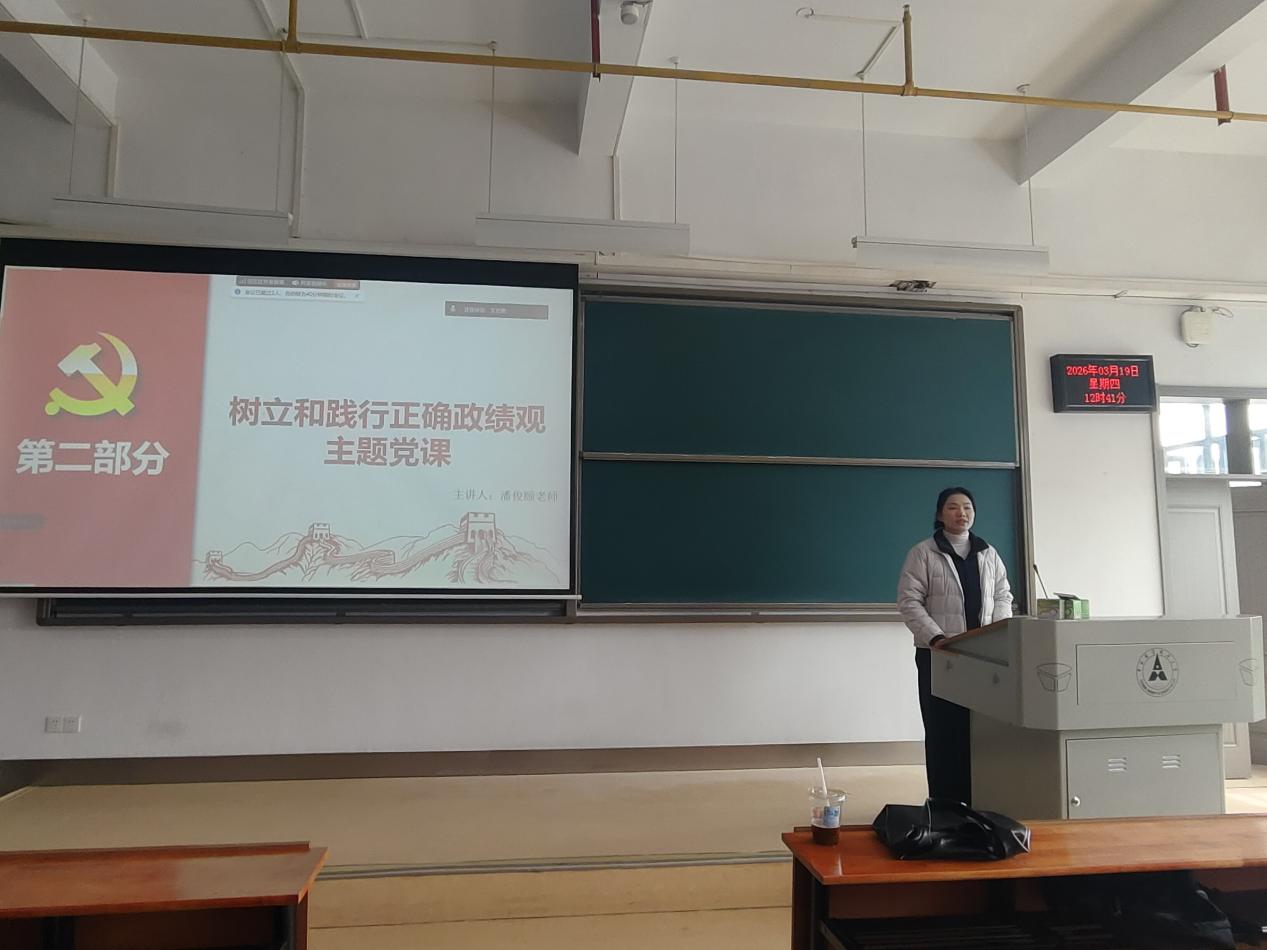 随后,潘俊颐老师为支部成员讲授“树立和践行正确政绩观”主题党课。潘老师围绕正确政绩观的深刻内涵和实践要求,结合习近平总书记关于政绩观的重要论述,从立党为公、为民造福、科学决策、真抓实干四个维度,系统阐释了新时代党员干部应当树立怎样的政绩观、如何创造经得起实践、人民、历史检验的实绩。党课内容丰富、案例鲜活,引导支部成员深刻认识到正确政绩观是党性修养的直接体现,必须将正确政绩观内化于心、外化于行。