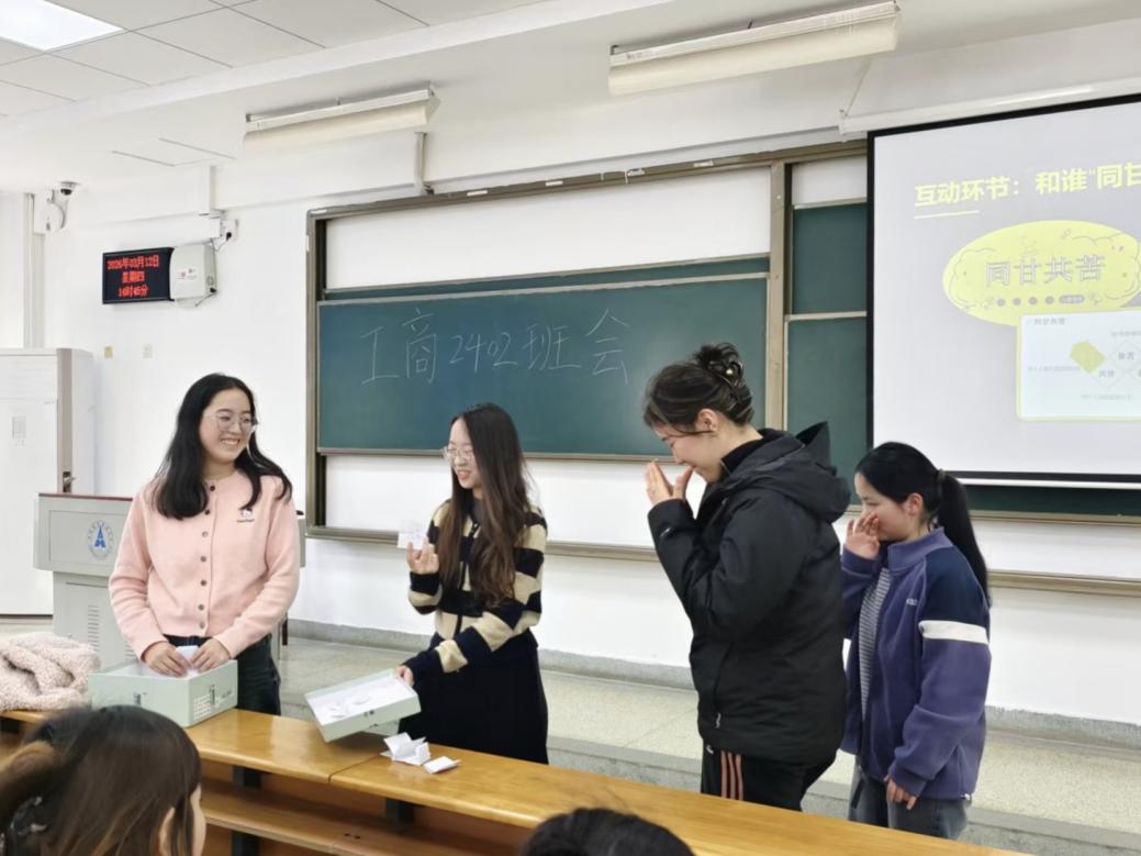 (通讯员 韩怡爽)2026年3月19日,工商2402团支部为强化班级思想建设,增强集体凝聚力,有序开展入党积极分子推优班会与主题团日活动,以丰富活动凝聚班级力量,让青春在实践与交流中绽放光彩。