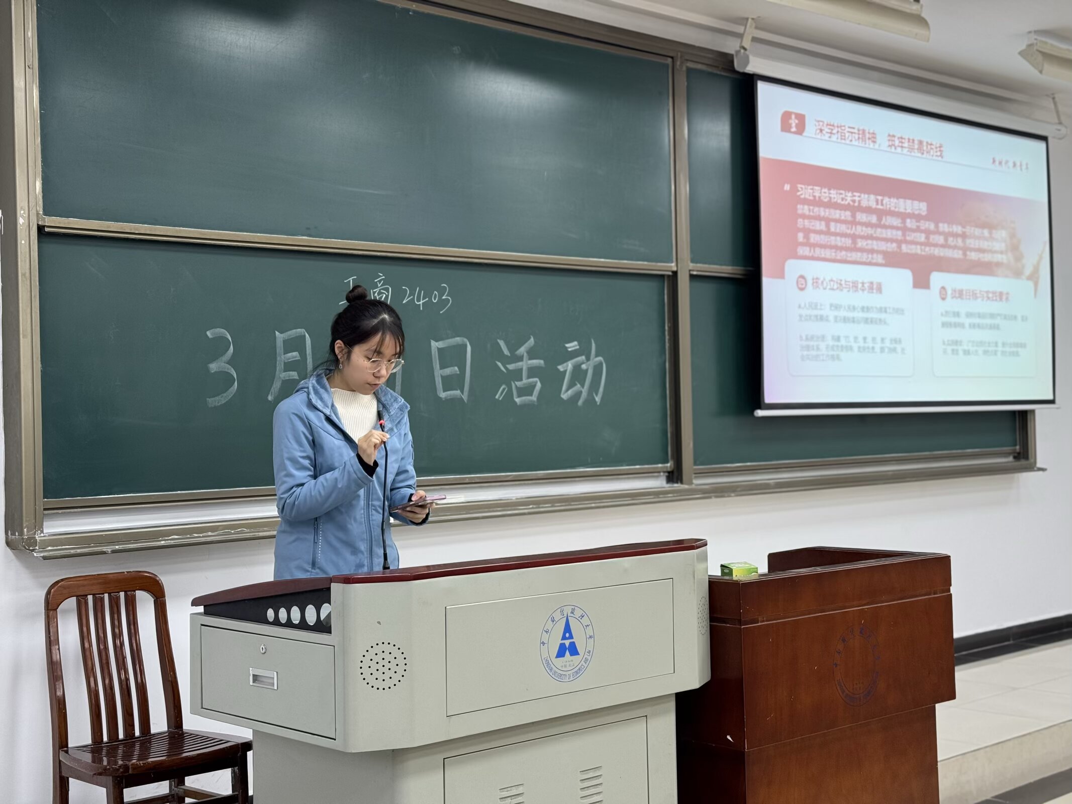 同学们深入学习习近平总书记关于禁毒工作的重要指示精神,结合党的二十届四中全会关于推进国家安全体系和能力现代化的部署,强化对毒品危害的认识和抵制毒品的自觉。在防诈宣传环节,通过“网络刷单”“校园贷”“游戏账号交易”等真实案例剖析,揭示常见诈骗手法,帮助同学们提升识别与防范能力。