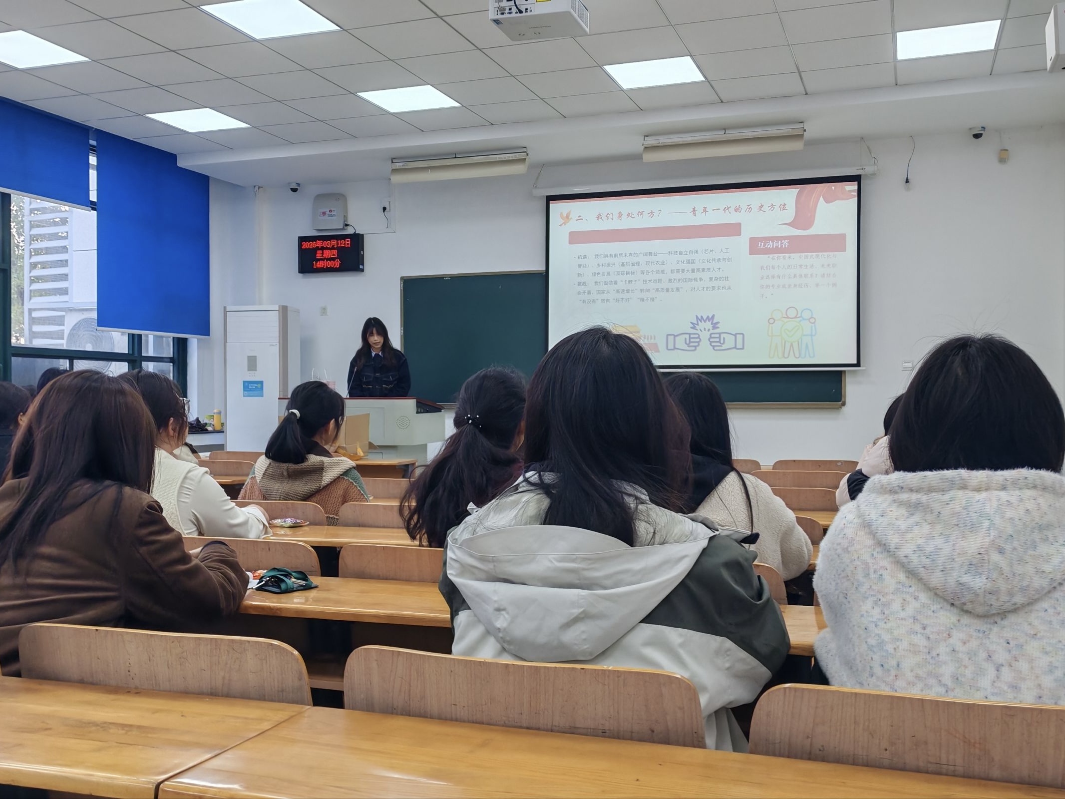在互动环节,同学们围绕“中国式现代化与个人成长的联系”展开热烈讨论,结合自身专业与经历,分享对未来发展方向的思考。随后,班级以“时代楷模”黄文秀的感人事迹为例,讲述她将个人理想融入国家需要、用生命诠释青春担当的故事,激励同学们在新学期树立奋斗目标,争做有理想、敢担当、能吃苦、肯奋斗的新时代好青年。