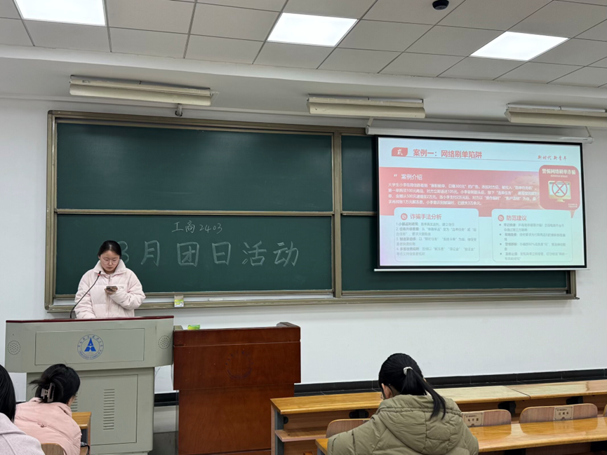 (通讯员 文思铭 摄影 胡梦碟)为深入学习贯彻党的二十大和二十届历次全会精神,引导青年学生将个人成长融入中国式现代化建设大局,2026年3月12日,工商管理学院工商2403团支部在文泰楼召开“立报国强国大志向 做挺膺担当奋斗者”新学期主题班会,并于3月20日在文泰楼开展“筑牢安全防线 青春护航平安”团日活动。两项活动由班级团支部和班委共同策划,全体同学积极参与,现场气氛热烈。