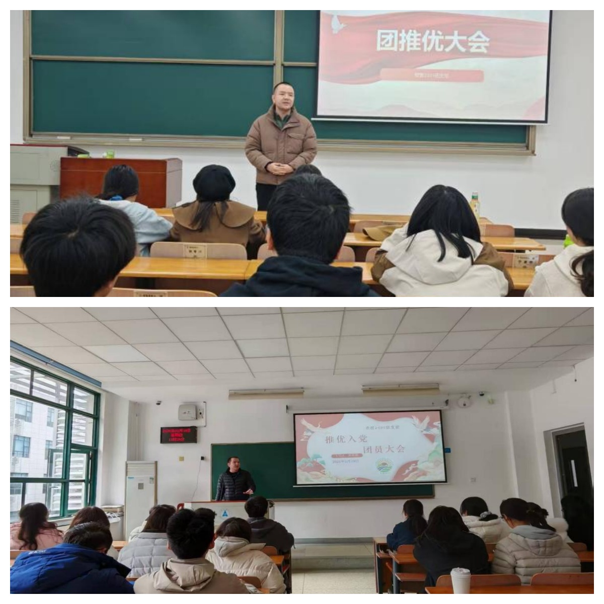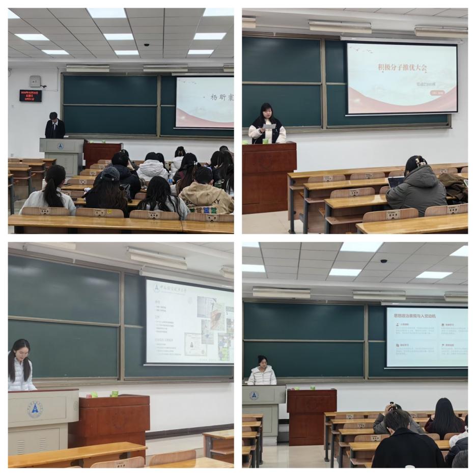 年级辅导员于苏甫江·玉山老师出席部分团支部“推优入党”团员大会并发表讲话。他对各团支部工作的规范性给予肯定,并强调了推优入党是加强党员队伍建设的基础环节,勉励全体团员端正入党动机,不仅在组织上入党,更要在思想上入党,时刻发挥模范带头作用。