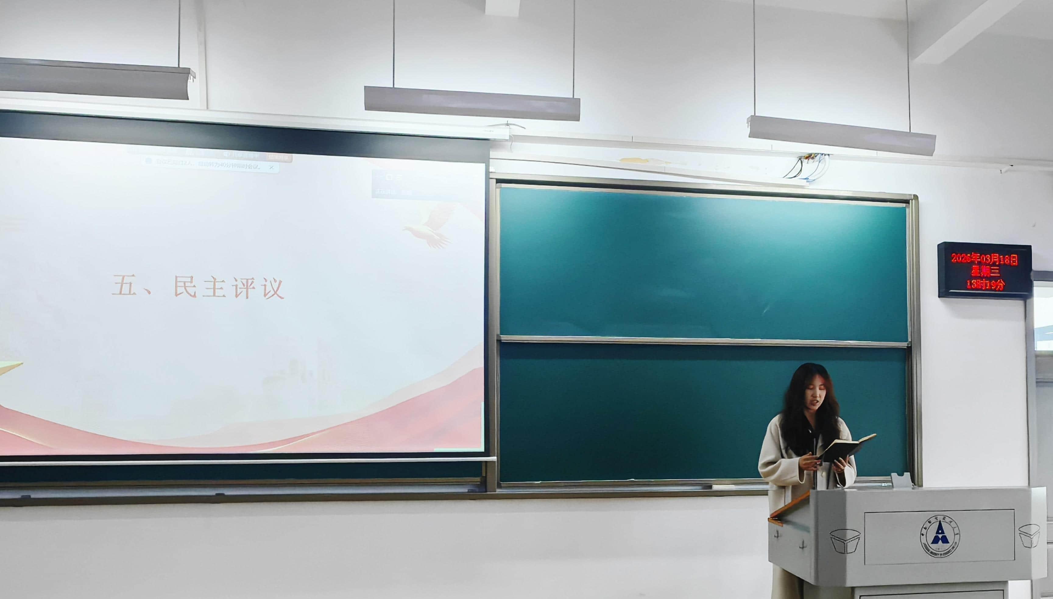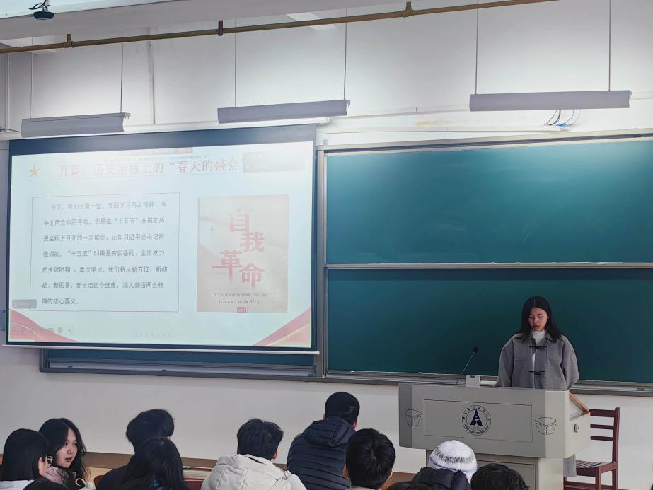 活动第二项,肖洁同志领学2026年全国两会精神。围绕政府工作报告、“十五五”规划纲要、高质量发展、民生保障、青年担当等重点内容开展学习,帮助党员准确把握国家发展大势与政策导向,自觉把个人成长融入国家发展大局,以青春之力服务中国式现代化建设。