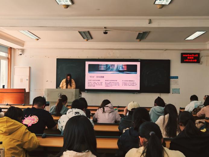 在“传薪火”篇章,团小组以“元首节”为切入点,生动讲述了元宵节从汉代祭仪到当代花灯会的千年传承。同学们分享了广州越秀公园花灯会、故宫“数字元宵”小程序等创新案例,探讨如何让传统节日在青年中“活”起来。现场还展示了由班级同学手工制作的环保灯笼,将岭南剪纸元素与现代设计相融合,用青春创意为传统文化注入新活力。
