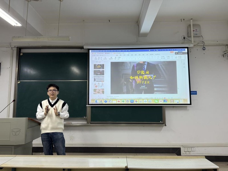 本次讲座邀请学院2024级农业管理专业硕士研究生包嵘臣担任主讲。包嵘臣结合自身求职经历,从职业认知、实习申请、面试准备和求职心态等方面进行了分享,为同学们带来了一场内容充实、针对性较强的就业经验交流。