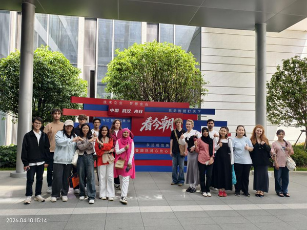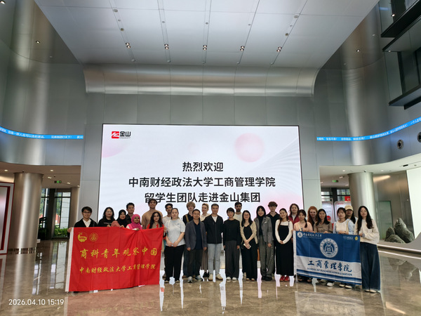 2026 年 4 月 10 日,工商管理(全英文授课)专业《探索中国企业》课程第二期实践活动顺利开展,师生一行走进金山集团武汉总部,近距离感受中国数字科技企业的智造实力与创新活力。本次活动由授课教师刘文通副教授带队,人力资源系王淑红教授、汤一鹏副教授,MBA 中心丁怡老师陪同参观,学院工商管理(全英文授课)项目全体本科生、IMBA 留学生代表,以及企业管理、资产评估专业部分研究生共计 20 余人参与。