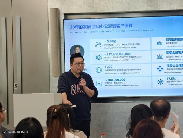 随后,国际事业部公共运营组侯军围绕企业出海战略,分享了金山集团的全球化布局、政策方向与未来规划。作为中国软件“走出去” 的代表性企业,金山办公已在东南亚、中东、非洲等地区实现了显著增长,WPS Office 覆盖全球多个国家和地区,成为微软 Office 在国际市场的核心竞争者,生动展现了中国数字智造企业的全球竞争力。