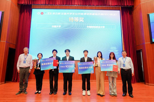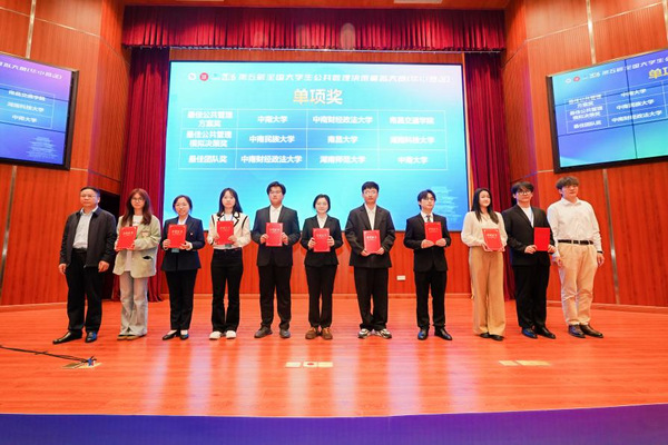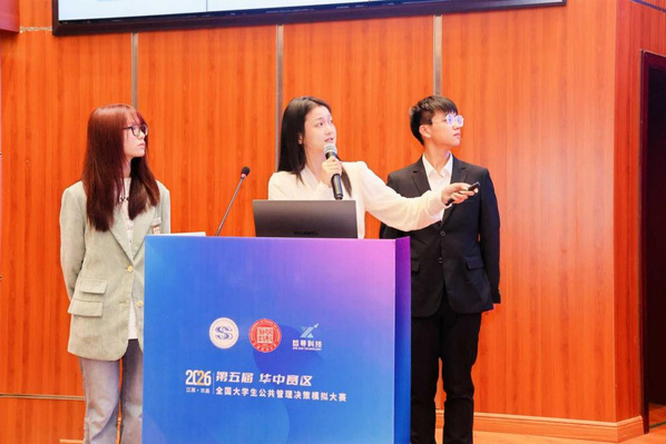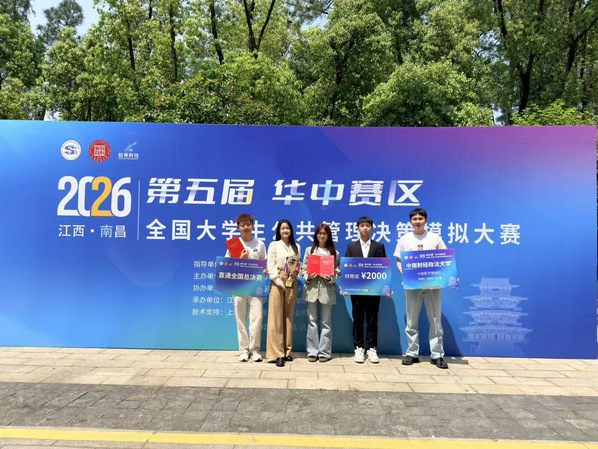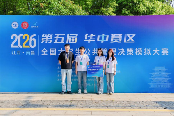 2026年4月18日至19日,第五届全国大学生公共管理决策模拟大赛(华中赛区)圆满落幕。我院学子劳动关系2301班阳汶珊凭借扎实的专业素养、出色的决策能力与高效的团队协作,在公共管理学院的悉心指导与全队共同努力下,从四省50 所高校 54 支参赛队伍中脱颖而出,一举拿下华中赛区特等奖、最佳团队奖、最佳公共管理方案奖三项重磅荣誉。
