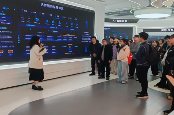在企业数字化展厅,学子们在讲解员的介绍下,全面了解了达梦四十余年的发展历程——从创始人冯裕才教授立志研发中国人自己的数据库,带领团队披荆斩棘、攻坚克难,突破核心技术壁垒,到2024年成功登陆上交所科创板,成为“国产数据库第一股”。同学们深刻认识到,自主创新的背后,是一代代科研工作者脚踏实地、精益求精的劳动付出,更是数智时代科技兴国、人才强国战略的生动实践,也让大家对“劳动创造价值、创新引领未来”有了更深刻的理解。