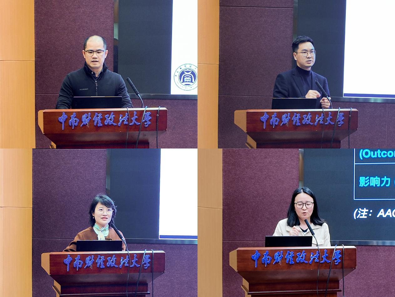 会上,徐浩轩、毛江华、冉雅璇、周凌旭四位老师,依次围绕AACSB标准4、7、8、9开展专项培训。培训聚焦课程体系构建、教学质量保障、学术贡献评价、社会影响力建设等关键内容,对照AACSB认证规范、自评材料撰写要求及专家访视常见问题,开展全面解读与实操指导。本次培训进一步明晰工作流程、细化迎评要点,为学院高效落实现场访视各项准备、持续提升商科办学质量夯实基础。