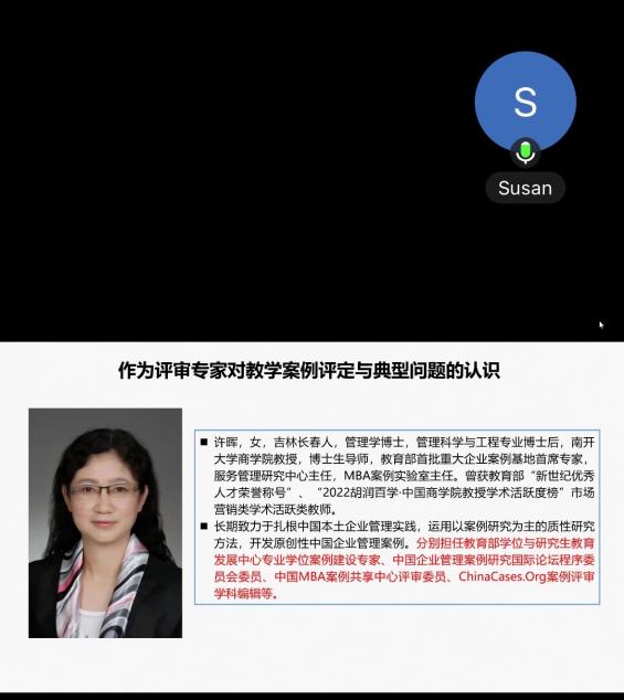 许晖教授介绍自身研究背景,并分享作为评审专家对教学案例评定与典型问题的认识