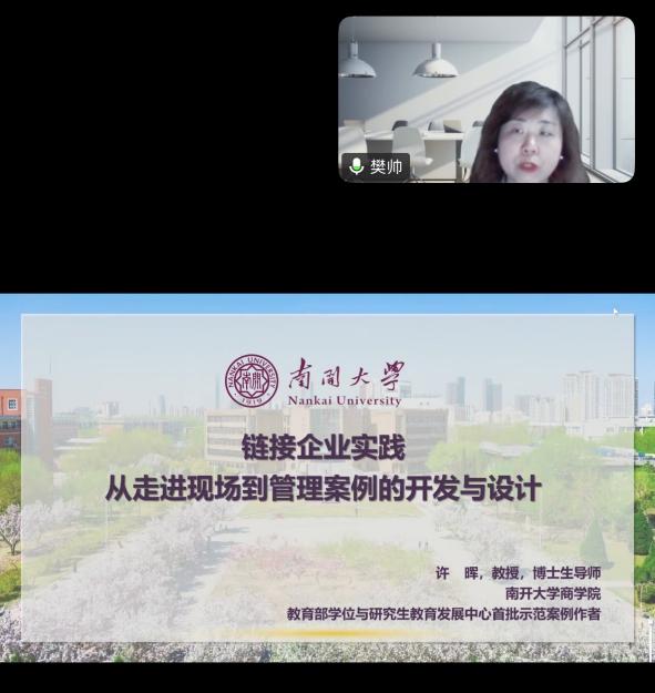 (通讯员:陈银萍 樊帅 张婷)2026年4月24日,在第十七届 “全国百篇优秀管理案例” 申报工作即将启动之际,为进一步提升我校教师与研究生的管理案例开发与撰写能力,提升百优命中率,中南财经政法大学工商管理学院管理案例研究中心依托案例研究实验室组织线上学术讲座与交流活动。本次活动特邀南开大学商学院教授、博士生导师许晖作主题为 “链接企业实践,从走进现场到管理案例的开发与设计” 的线上专题讲座,由中南财经政法大学工商管理学院管理案例研究中心主任、营销管理系主任樊帅副教授主持,全校多个学院的师生线上参与学习与交流。