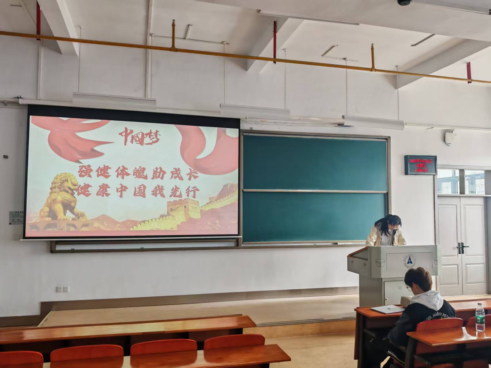 结合世界卫生日,班级围绕“强健体魄助成长,健康中国我先行”展开学习与互动。大家共同了解了世界卫生组织的健康建议,包括每周至少150分钟中等强度运动、每天摄入足量蔬菜、保持充足睡眠等。董菲仪结合自身经历,分享了养成良好作息和坚持运动的心得,呼吁同学们做自身健康的第一责任人。