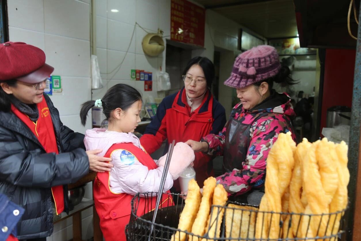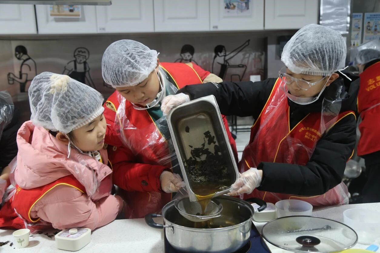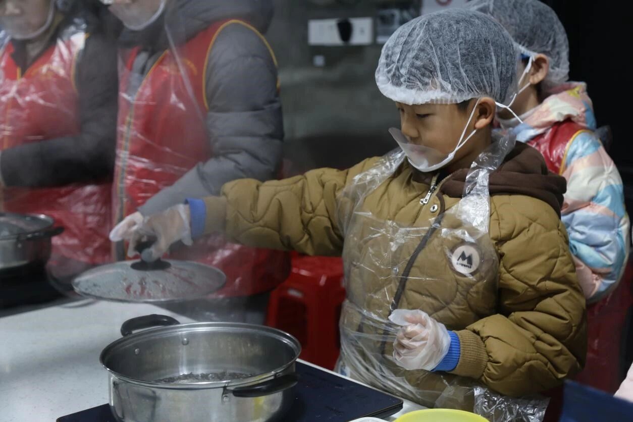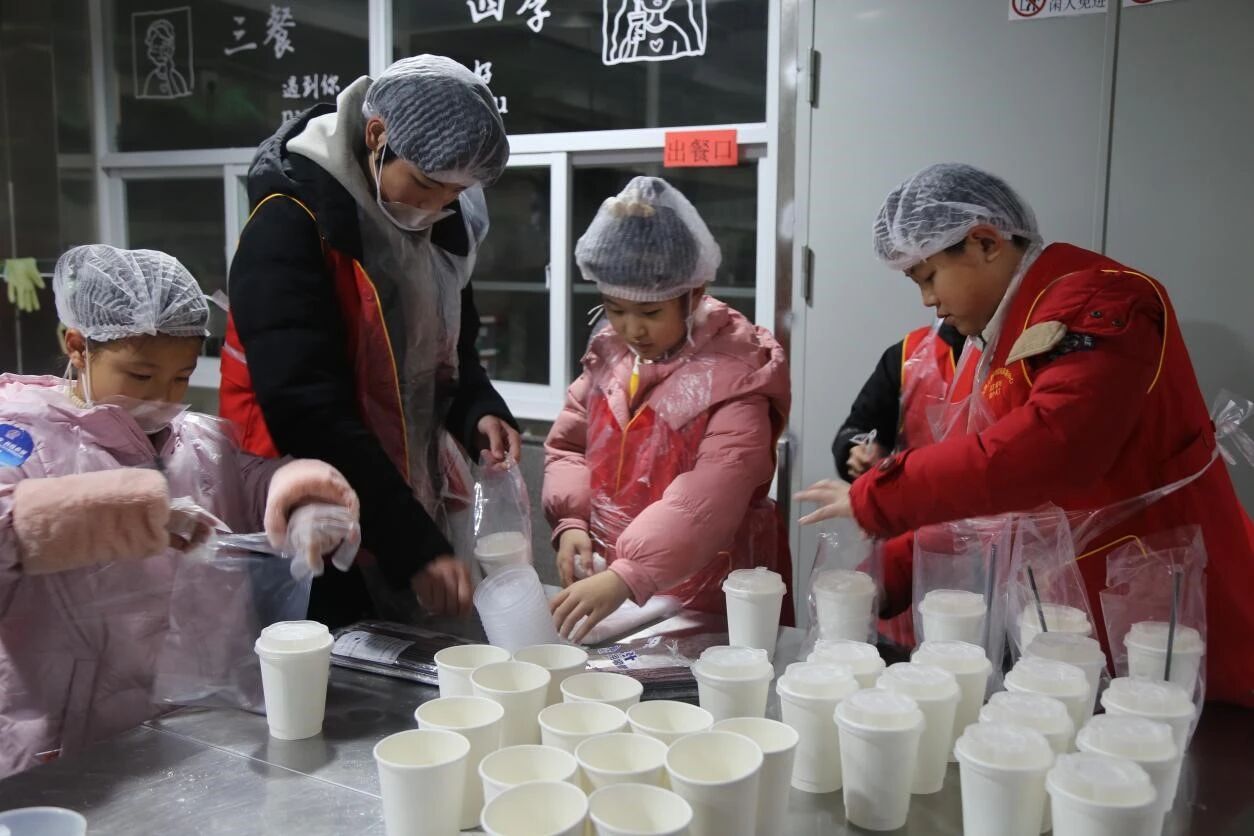 At 9:30 a.m. on 31st January, the activity entered the summary and deepening stage, with one parent accompanying each family to continue the public welfare warmth. In the baking room, young volunteers acted as "Messengers of Love", learning milk tea making skills earnestly, with every step from ingredient preparation to sealing filled with sincere care. Later, the children took the homemade milk tea to the community streets, presenting warmth to frontline workers including teachers from Aite Special Education Center for Children, community security guards, sanitation workers, breakfast shop keepers and fresh food market staff, expressing gratitude through practical actions and spreading public welfare warmth across the community.